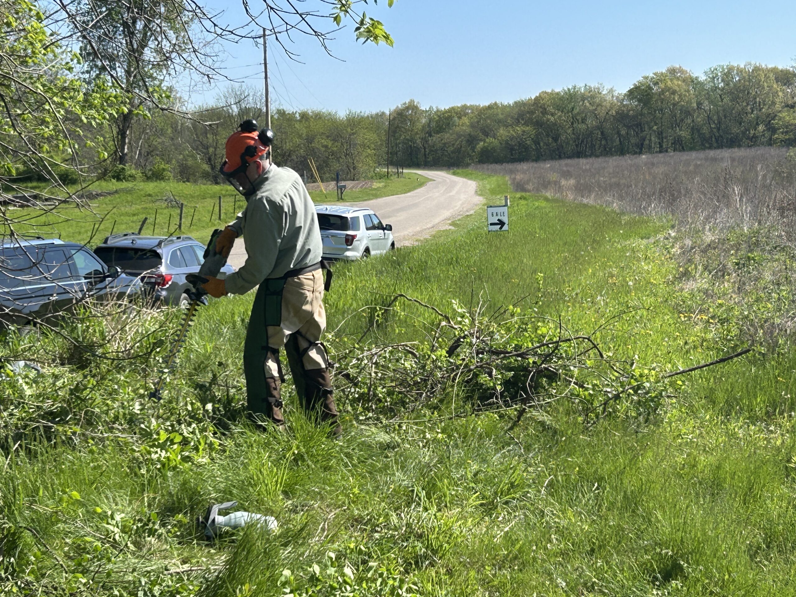 “GALE members started up in January clearing brush in the Casper Creek Natural Cemetery’s Memorial Grove,” Cam said. “We also held work days at Portage (now Mąą Pįį), Schurmeier Forest, Witkowsky Wildlife Area, Horseshoe Mound, Wapello, Casper Bluff, and Hanley Savanna. The clean-up of the Memorial Grove at Casper Bluff was the longest GALE has spent working on a single project since I have been involved. But when we finished it was transformed. It will benefit many and was our biggest accomplishment in the past year.”