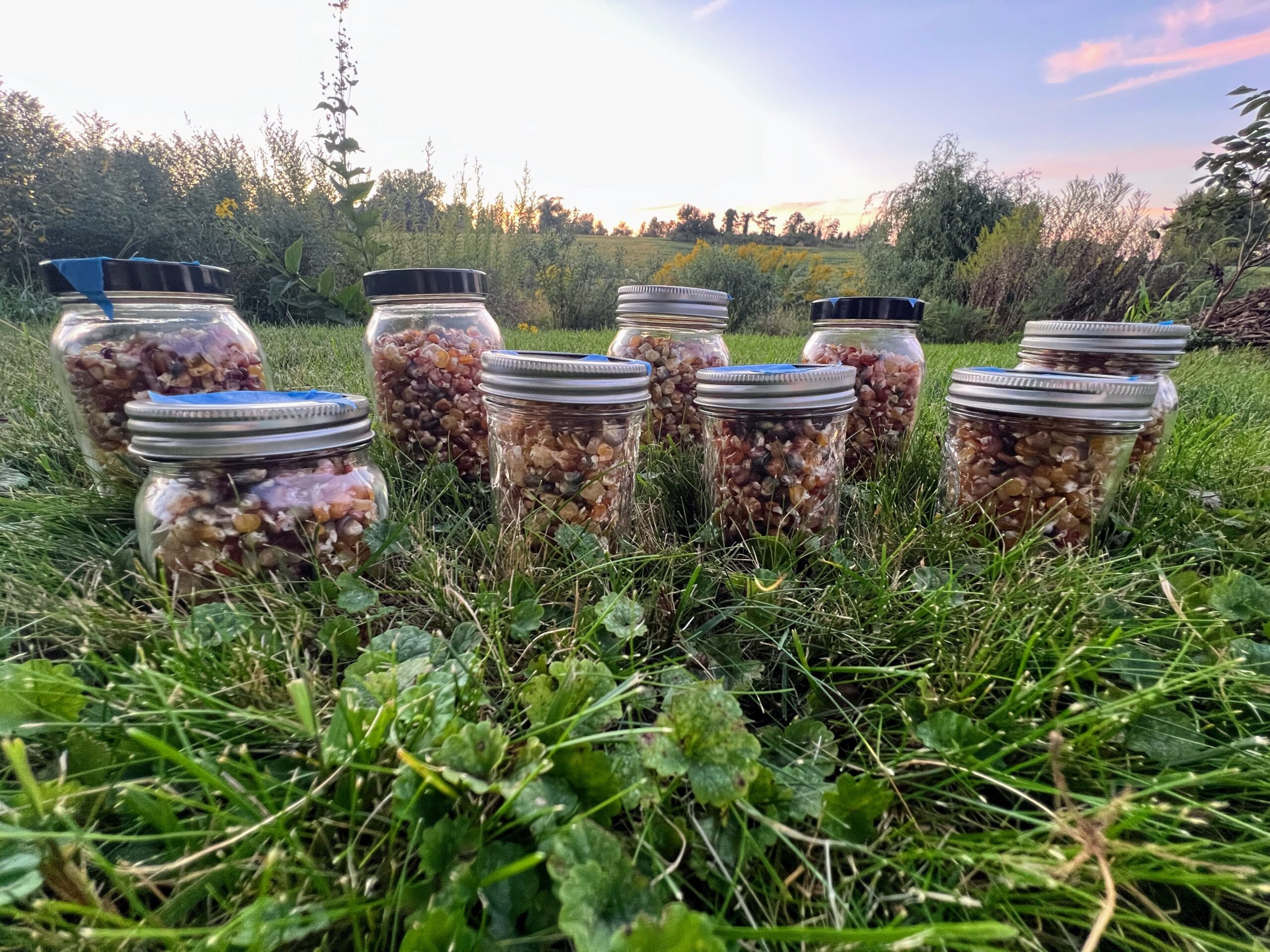 In May, the corn seeds were planted in a specially made, raised garden bed by two of our staff alongside a local centennial corn farmer. The small team felt linked to their rural neighbors, many of whom were in the fields, also planting crops for harvest in the fall. They thought about how this simple act has been carried out by countless others before them, a seasonal activity to prepare for winter that knows no cultural boundaries. In August, harvesting began with most of the colorful corn seeds being de-cobbed and dehydrated for later use in cooking. The rest were preserved for next year’s crop as part of an expanded Indigenous garden at JDCF’s Hess House Center for Science and Culture in Galena, IL. In October, members of the Ho-Chunk Nation traveled to Galena to share their traditional Green Corn Ceremony, in celebration of the harvest, with members of JDCF.