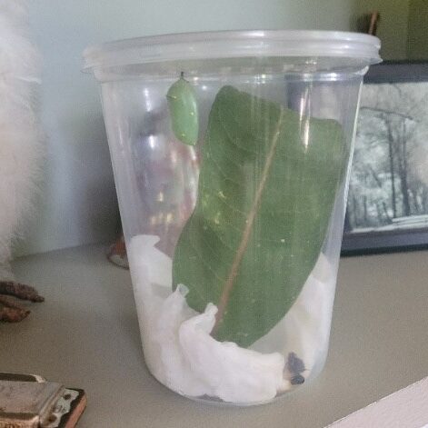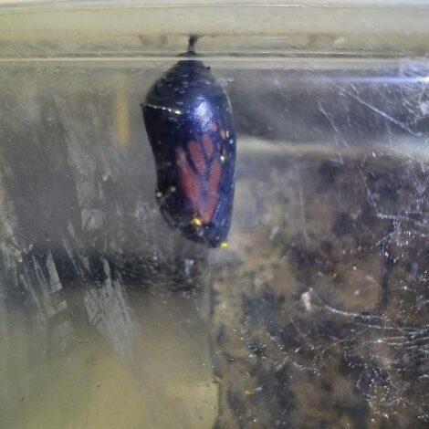 This year in September Michele Brueggen, a JDCF volunteer, gathered a Monarch caterpillar from local milkweed plants to watch and document the metamorphosis. She watched as it went from caterpillar to butterfly. And then released it to join the thousands arriving now in Mexico.